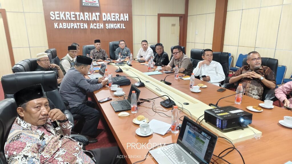 NEWSTERKINIACEHSINGKIL.COM | Aceh Singkil – Pemerintah Kabupaten Aceh Singkil mengikuti rapat koordinasi secara virtual bersama Gubernur Aceh terkait penyusunan Dokumen Rencana Rehabilitasi dan Rekonstruksi Pascabencana (R3P), Jumat (2/1/2026).